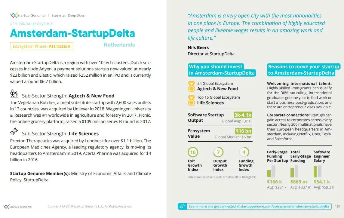 - The ecosystem value for Amsterdam-StartupDelta is $16 billion, more than double the global average.