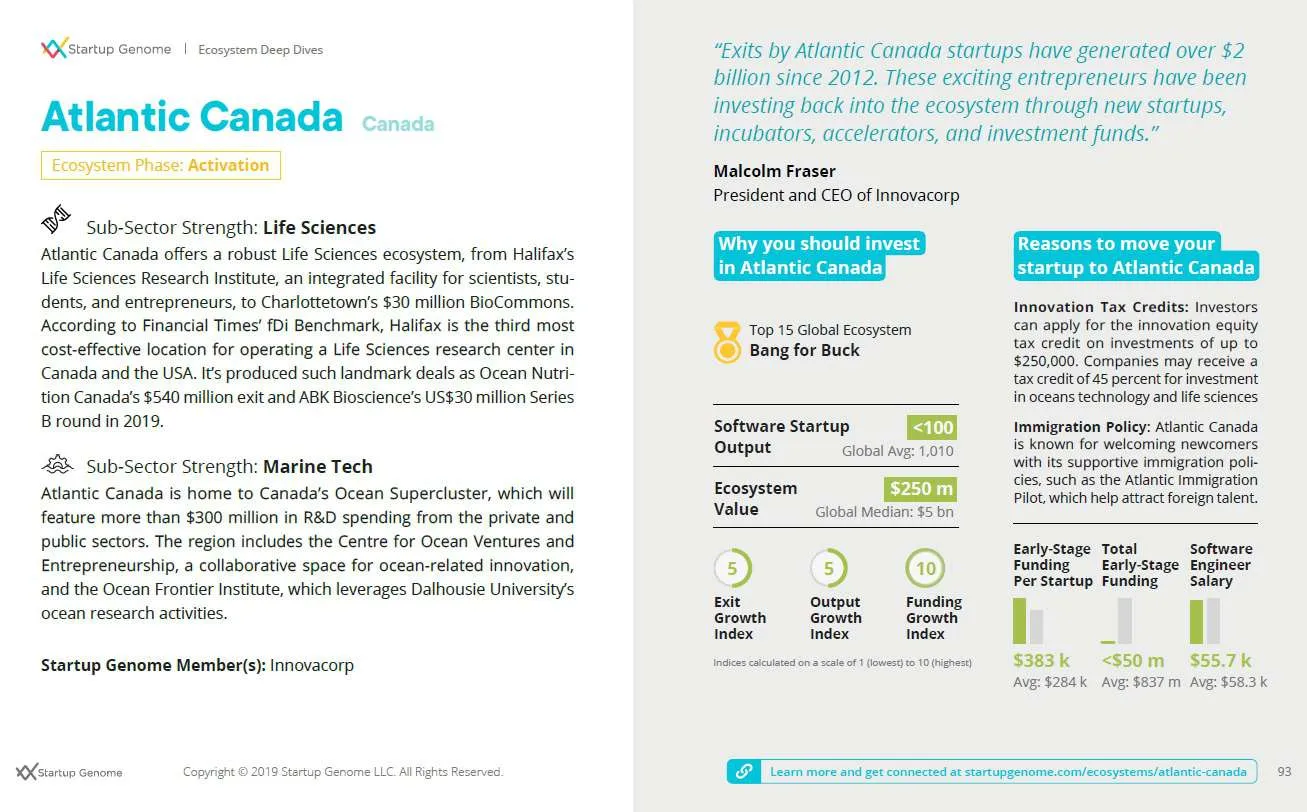 - Atlantic Canada is a top 15 global ecosystem for Bang for Buck.