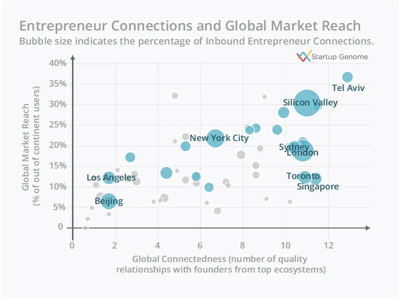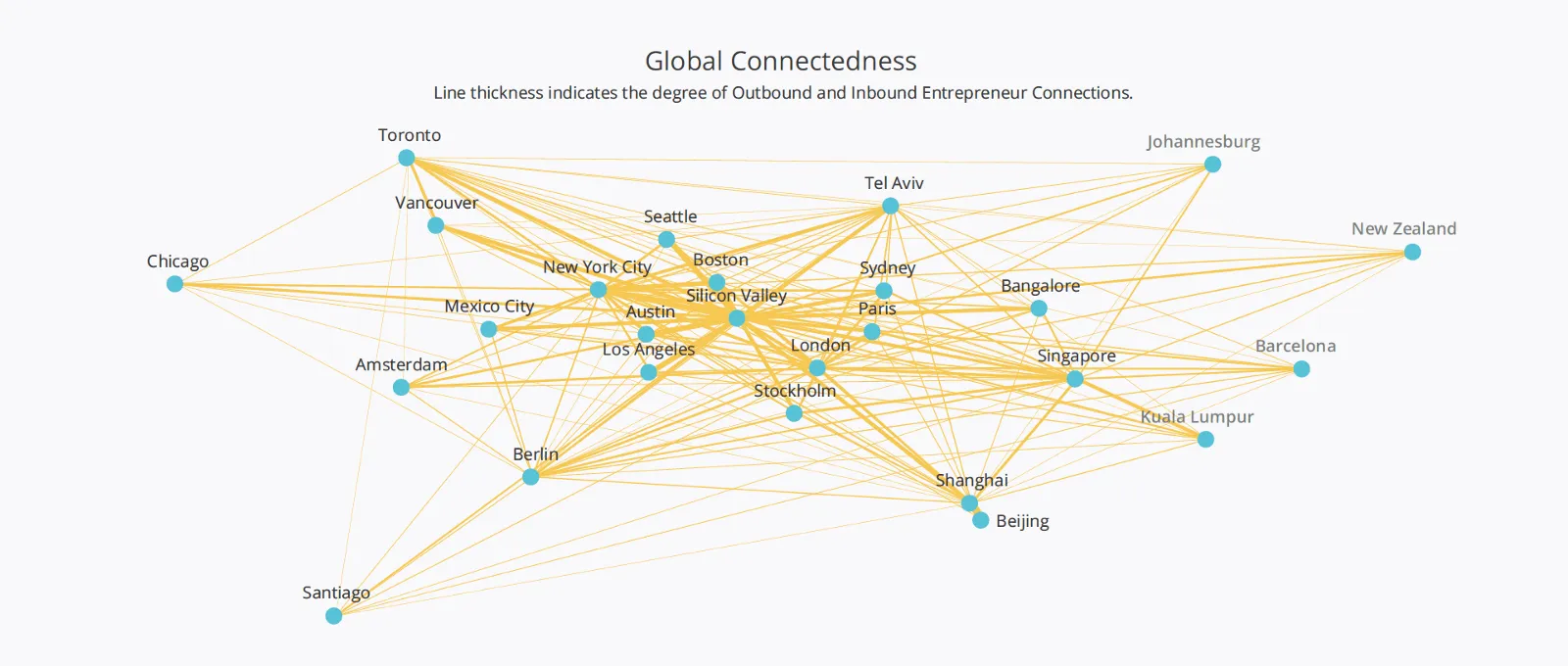 Through our primary research with thousands of startup founders and executives around the world, our research has consistently found that globally-connected startup ecosystems grow faster and perform better than less-connected places.