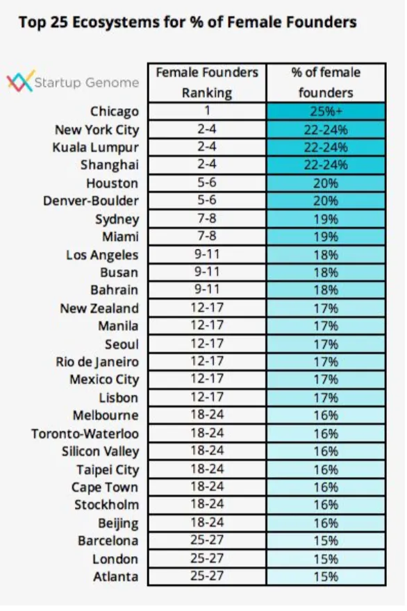 Read more from the series including a deep dive on Startup Genome’s Women in Tech research and a spotlight on Chicago, the number one ecosystem for female founders. Are you from Houston and working to improve the entrepreneurial journey for women? We’d like to hear from you! Email [email protected] and let’s talk.