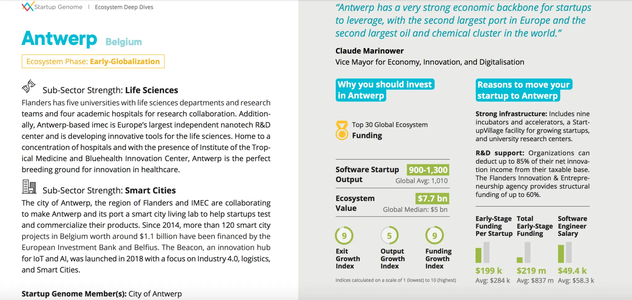 Some interesting data points about Antwerp’s ecosystem in our 2019 assessment include: