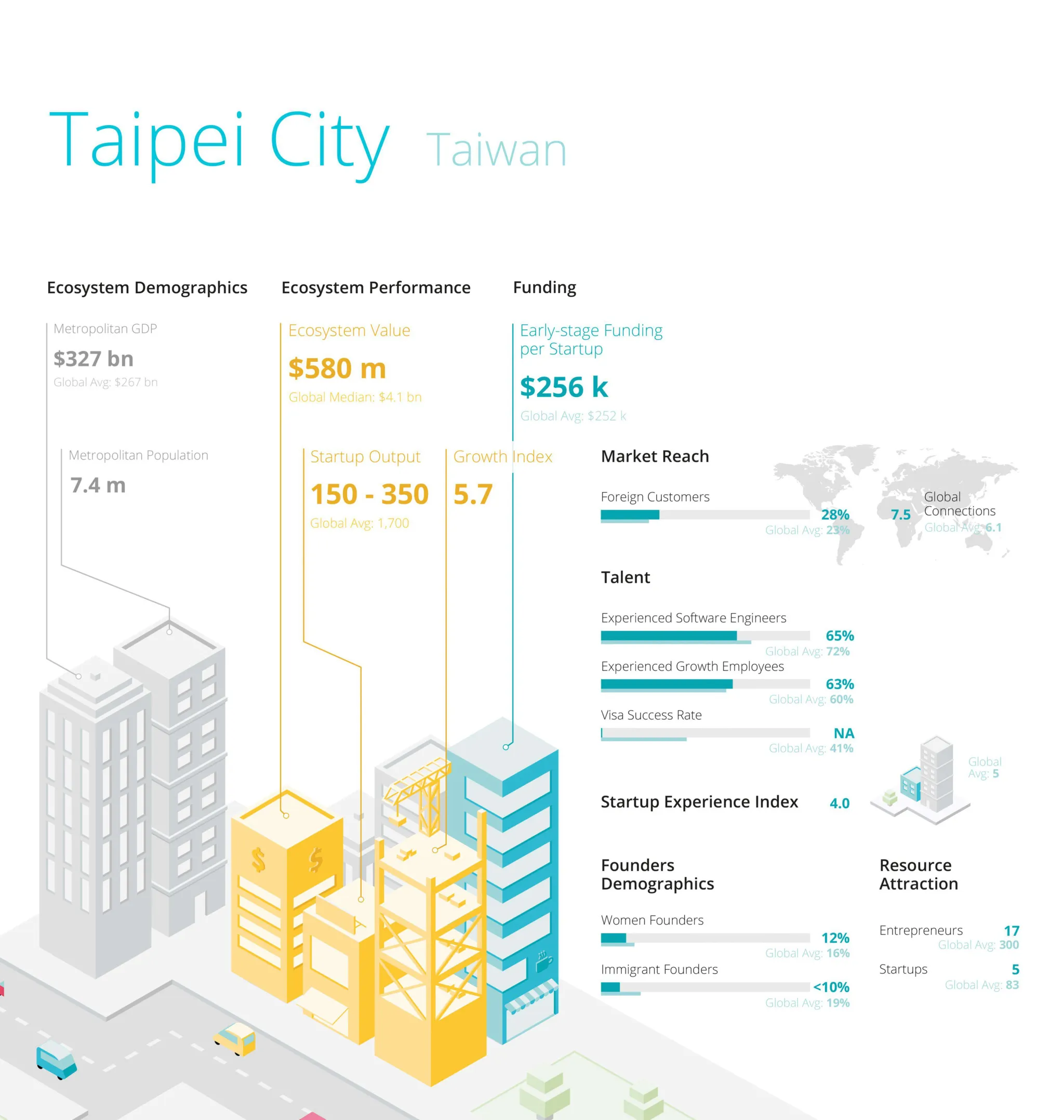 In the 2019 Global Startup Ecosystem Report, Startup Genome will update this analysis and provide new benchmarking for Taipei City and dozens of other startup ecosystems. We’re currently collecting founder surveys from the leaders of tech-enabled business under 10 years old in the area. Taipei founders that participate receive an individualized assessment benchmarking their startup locally and against 45+ ecosystems worldwide, as well as discounts and access to software and services. To take the 10-15 minutes survey by 1/31/19, click here.