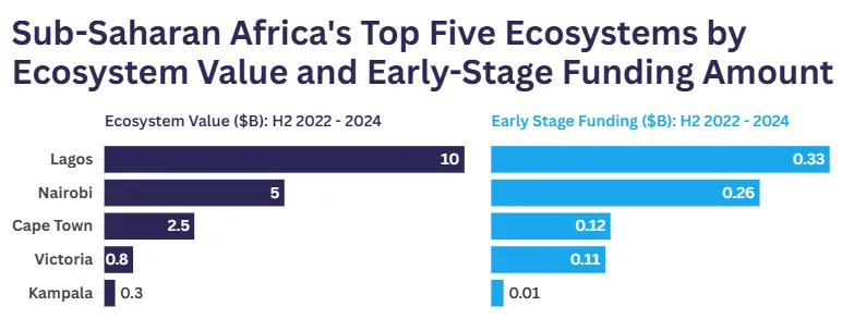 - Lagos is the #1 Sub-Saharan Africa Ecosystem in Funding, measuring innovation through early-stage funding and investor activity. It is the #2 sub-Saharan Africa Ecosystem in Performance and Talent & Experience.