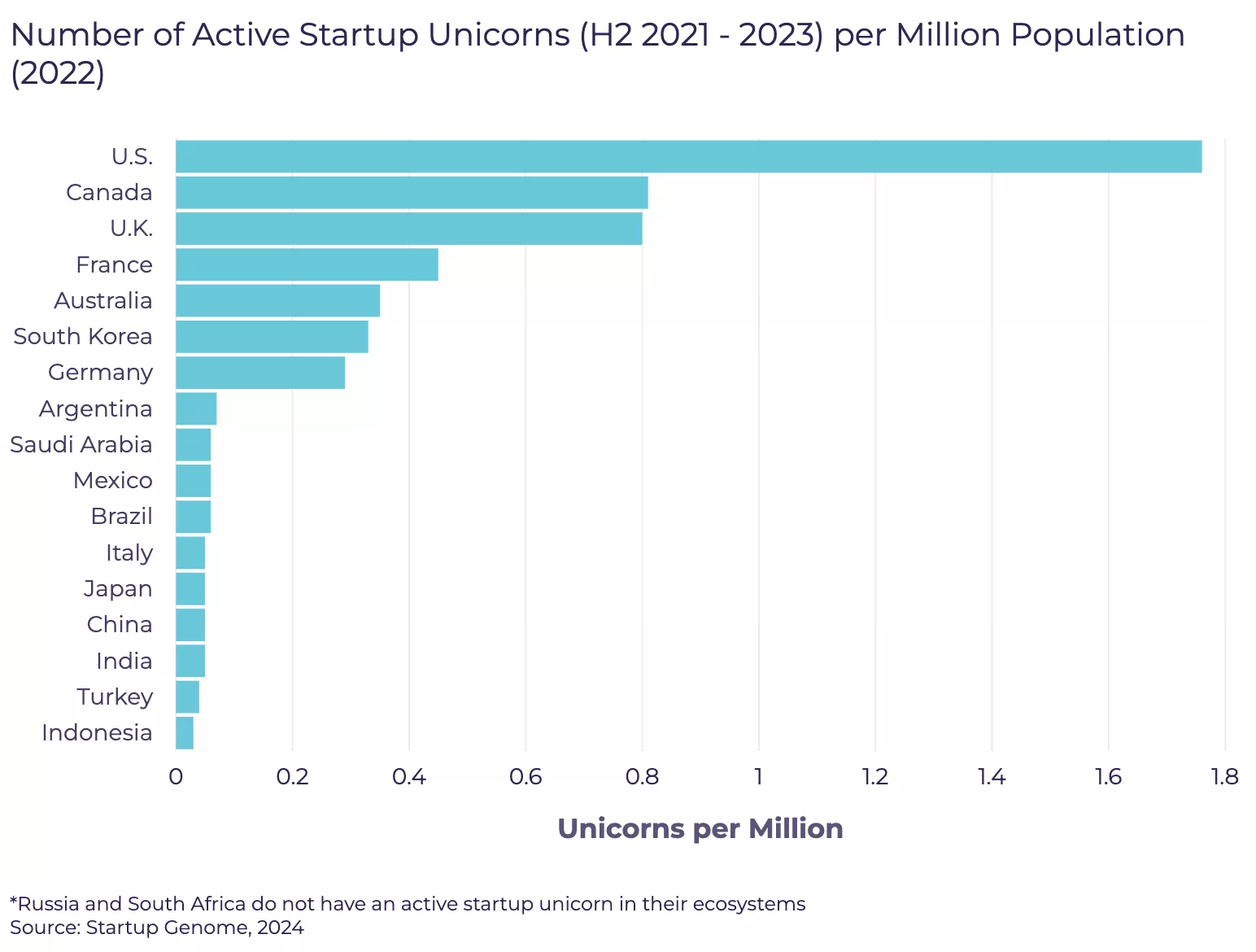 - United States: 1.8 unicorns